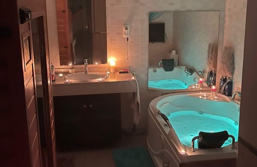 El alojamiento es el paraíso hecho realidad para sorprender a tu pareja o una estancia con amigos. Este Exclusivo y original ático rural con SPA privado te va a enamorar desde el primer momento y hasta el final de tu estancia..... tiene unas impresionantes vistas panorámicas y frontales a la montaña/monte. Disfrutarás de una zona privada exclusiva y lujosa de SPA en casa: sauna y jacuzzi totalmente privados y tanto el jacuzzi como la sauna tienen una capacidad de 3 personas.