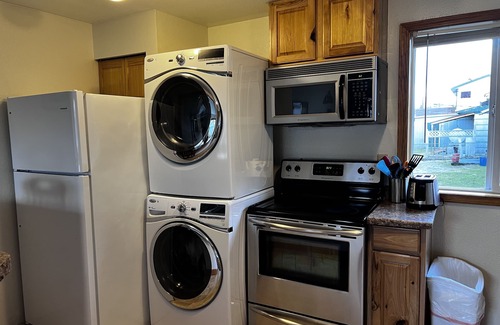 También conocido como los cuartos del capitán. Convenientemente ubicado a medio camino entre el pequeño puerto de Seward y el centro histórico de Seward. Ambos están a poca distancia a lo largo de un sendero costero que está a sólo una cuadra de la puerta principal. El rastro es parte del rastro original de Iditarod. Muy limpio y privado con 2 dormitorios, cocina completa, wifi, DirectTV / DVD, lavadora y secadora y una barbacoa. Esta unidad también tiene un sofá estilo futón que se pliega y puede dormir de una a dos personas más. Llevando el total a 6 personas. Adyacente a nuestra otra unidad de alquiler de vacaciones (VRBO Listado del # 738304). Esto es ideal para alguien que está deseando tener un alquiler para 8 a 10 personas, ya que las dos unidades están al lado del otro. Poseído y funcionado por una generación 4'th Seward, Alaskan.