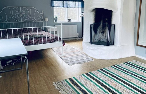 Distribución: cocina(horno, microondas, lavavajillas, nevera con congelador , agua de pozo ), salón-dormitorio(cama doble plegable, TV(canales de TV suecos)), salón-dormitorio, dormitorio(cama doble), dormitorio(cama doble, cama doble plegable), dormitorio(cama individual), dormitorio(cama doble), cuarto de baño(lavabo, ducha, váter, lavadora), muebles de jardín
