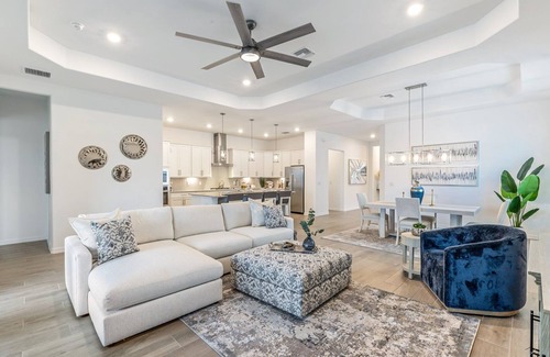 Prepara una comida casera en la cocina, equipada con horno, placa de cocina y frigorífico, además de cafetera y tetera, máquina de hielo y microondas. Y como podrás aprovechar la lavadora y la secadora, no te hará falta llevar mucho equipaje. Otras comodidades incluyen aire acondicionado, calefacción y una mesa de comedor.