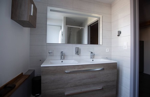El cuarto de baño está equipado con ducha, lavabo y WC.