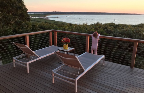 De día o de noche, no hay nada más Viñedo de tomar en las impresionantes vistas desde la terraza tranquila. Clavada definitiva del sol en el mar a veces se anunciaba, dependiendo de la dirección de la brisa-por el débil sonido de aplausos desde excursionistas Menemsha Beach que ven una puesta de sol un poco antes de su punto de vista inferior a media milla de distancia.