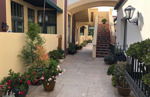 Nuestra casa se encuentra en el segundo piso de un edificio de condominios de lujo con ascensor: es un hermoso loft con techos de 14 pies en el centro de Santa Bárbara. El apartamento está amueblado en un estilo mixto de mediados de siglo con todas las comodidades modernas, incluyendo un televisor de 72 ", w / d, dw, w / d, agua filtrada, A / C y una terraza con barbacoa de gas y mesa al aire libre. El segundo dormitorio / oficina tiene una cama de pared muy cómoda con un nuevo colchón tamaño queen; El maestro tiene un gran baño contiguo. El comedor tiene capacidad para 6-8 personas; También hay una terraza acristalada que se utiliza como estudio de pintura y un estudio con un televisor adicional.