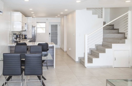 La cocina está equipada con horno, frigorífico y lavavajillas, además de cafetera y tetera, hervidor eléctrico y microondas. El cuarto de baño incluye un secador de pelo y toallas. Y no tendrás que llevarte ropa de más, porque también hay acceso a una lavandería. Otras comodidades incluyen ropa de cama, aire acondicionado y servicio de limpieza limitado.