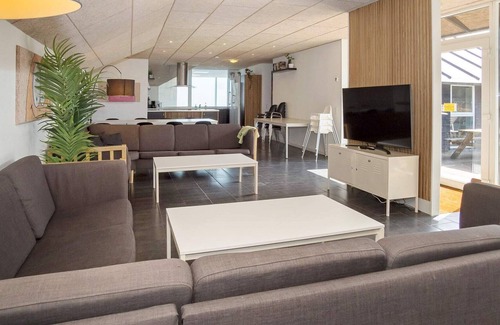 Spacious cottage, which contains everything the heart can desire of activity and development opportunities. The large pool area contains a swimming pool, sauna and whirlpool with room for 4-6 people. After a good and eventful day in Thy's beautiful nature, it is great to let yourself slide down into the house's large whirlpool and just relax while you get an underwater massage of the hot rays or let yourself be warmed through in the sauna. In the activity room you can challenge each other in table football, billiards, darts or X-box. There is a flat-screen TV in the activity room and 2 bunk rooms. The house is extremely spacious and well-dimensioned. The dining / living area is practically furnished with a flat-screen TV, sofa area and wood burning stove. The house has 10 bedrooms, eight with double beds and two with each a bunk for two people and each two beds. There is a cot and two high chairs. There are three toilets with washbasin, three with shower and all have underfloor heating. Large kitchen with everything in white goods, which belongs in a house for many people, including two dishwashers and two stoves. Wireless internet connection allows you to check emails or anything else. The house is located by Denmark's first national park, National Park Thy, on a large natural plot with terrace.