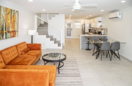 La cocina está equipada con horno, frigorífico y lavavajillas, además de cafetera y tetera, hervidor eléctrico y microondas. Disfruta del wifi gratis y de la televisión por satélite o cable. El cuarto de baño incluye un secador de pelo y toallas. Y como podrás aprovechar la lavadora y la secadora, no te hará falta llevar mucho equipaje. Otras comodidades de este alojamiento de 2 dormitorios y 2.5 baños incluyen ropa de cama, una tabla de planchar, aire acondicionado y servicio de limpieza limitado.
