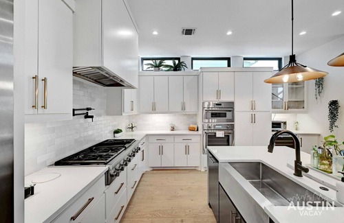 En esta casa de vacaciones que acepta mascotas podrás disfrutar de la escalada, del senderismo y de mucho más a muy poca distancia. Al disponer de un aparcamiento en las instalaciones, podrás olvidarte de tu vehículo e ir a pasear. Estarás a 2min a pie de East Sixth Street y a 14min a pie de Lago Lady Bird.