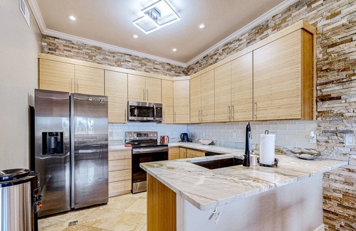 Este alojamiento de 2 dormitorios y 2 baños cuenta con una sala de estar, chimenea y aire acondicionado. El cuarto de baño incluye un secador de pelo y toallas. La cocina está equipada con horno, placa de cocina y frigorífico, además de cafetera y tetera, máquina de hielo y microondas. Y como podrás aprovechar la lavadora y la secadora, no te hará falta llevar mucho equipaje.