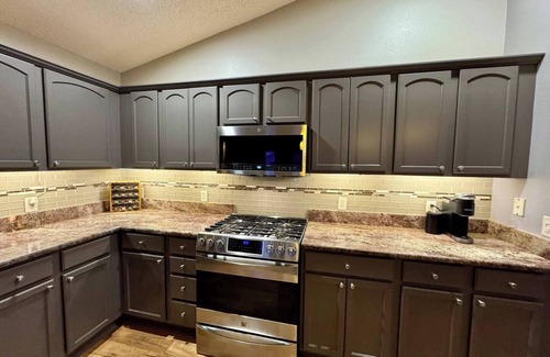Al instalarte en este alojamiento de 3 dormitorios y 2 baños, encontrarás una zona para barbacoas y aire acondicionado. Conéctate al wifi gratis, o relájate frente a un Smart TV. El cuarto de baño incluye un secador de pelo y toallas. La cocina está equipada con horno, placa de cocina y frigorífico, además de cafetera y tetera, microondas y utensilios de cocina. Y gracias a la lavadora y la secadora, podrás viajar con poco equipaje. Otras comodidades incluyen una tabla de planchar y calefacción.