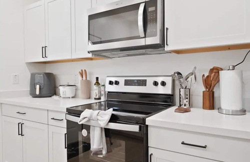 Al instalarte en este alojamiento de 2 dormitorios y 1 baño, encontrarás caja fuerte, aire acondicionado, escritorio y impresoras. Disfruta del wifi gratis y de la smart TV. El cuarto de baño incluye un secador de pelo, toallas y papel higiénico. La cocina está equipada con horno, placa de cocina y frigorífico, además de cafetera y tetera, hervidor eléctrico y microondas. Y como podrás aprovechar la lavadora y la secadora, no te hará falta llevar mucho equipaje. Otras comodidades incluyen ropa de cama, una tabla de planchar, calefacción y una silla de oficina.
