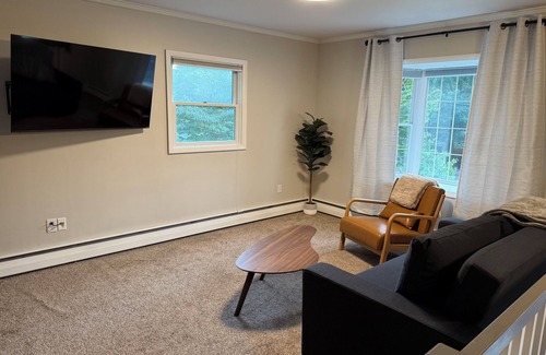Unwind in State College at this welcoming house. With 3 cozy bedrooms including 2 queen beds and 1 full bed, guests can relax in comfort. The 2 bathrooms are stocked with all the essentials. The PSU home includes tv’s in every bedroom and two living room one with 65inch tv. An additional living room space with a full bed provides extra room to spread out. Come experience the awesome charm of this property - we look forward to welcoming you to our place.