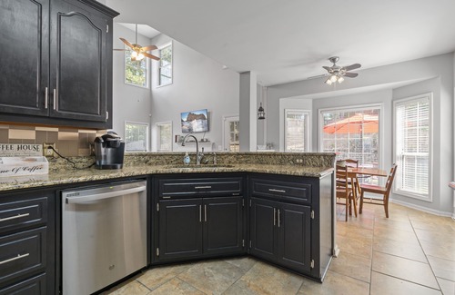 Este alojamiento de 3 dormitorios y 2.5 baños cuenta con una sala de estar, un comedor, barbacoas de gas y chimenea. El cuarto de baño incluye un secador de pelo, toallas y papel higiénico. Prepara una comida casera en la cocina, equipada con horno, placa de cocina y frigorífico, además de cafetera y tetera, máquina de hielo y microondas. Podrás viajar con poco equipaje, porque tendrás una lavadora y una secadora a tu disposición.
