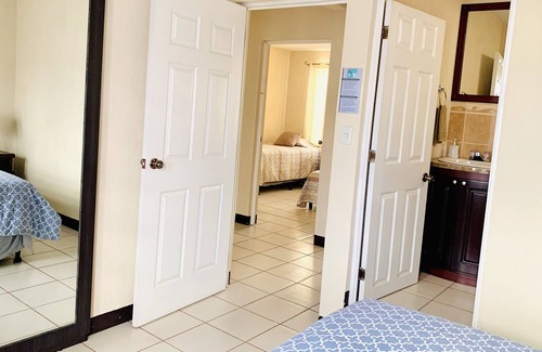 -3 cuartos, 1 cama queen, 1 cama matrimonial, 2 camas individuales y 1 sofá cama para 7 personas máximo.