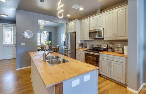 Whether you're road-tripping Route 66 or planning a quiet getaway near the Grand Canyon, this stylish 3-bedroom, 2-bath Kingman home offers the perfect base. Ideal for families and remote workers, it features a fully equipped kitchen, Smart TVs, air hockey, toys, and fast WiFi. Unwind on the covered patio, roast marshmallows by the fire pit, or take day trips to Laughlin casinos, Hoover Dam, or the Grand Canyon Skywalk.