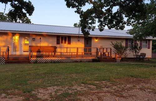 Nuestra tranquila y apartada casa en el lago Skiatook Lake está situada en cinco acres, a 10 millas al oeste de Skiatook en la carretera 20. Tiene vistas al puente justo enfrente de la entrada de la rampa para botes de Blackdog Park. La casa tiene tres dormitorios y dos baños, con cocina completa, comedor, lavandería y sala de estar. Se encuentra en la cima de la colina con la mejor vista panorámica del lago donde se puede ver el lago al norte y al este de la casa. Los huéspedes también pueden caminar hasta el lago desde la casa (a unos 300 metros de distancia).