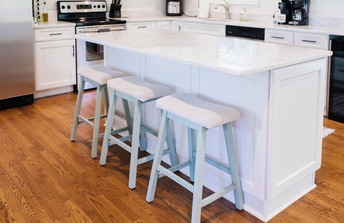 Indulge your culinary desires in our fully stocked kitchen, equipped with everything you need to whip up gourmet feasts or casual snacks. And when the weather beckons, take the festivities outside onto our expansive back deck, complete with a convenient gas grill for alfresco dining under the stars.