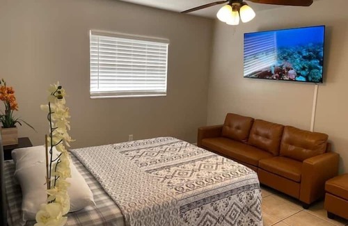 Este apartamento está en Tampa y es una ubicación fantástica desde la que recorrer los alrededores. A los amantes de la naturaleza y el aire libre les encantará estar a 14min en coche de Parque estatal Hillsborough River y a 14min de Lettuce Lake Park. El alojamiento dispone de garaje. Además, estarás a 6min en coche de Club de golf Pebble Creek y a 3min en coche de Cypress Creek Trailhead.