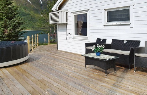 Nice holiday house on a plot with a great view by the Langfjord on Arnøya's south side. The island is located at the far end of the Lyngenfjord north of Tromsø with a view to the Lyng Alps and known for magnificent nature both summer and winter. Boats for rent 6 km from holiday home. The house has been nicely restored (2014) and has a good standard. Two of the bedrooms have double beds 150 cm wide each, plus a single bed. Satellite TV with 20 channels, including several international ones. After active days, you can enjoy a bath in the jacuzzi next to the house. From the house there is a great view of the mountain Trolltinden on the other side of the fjord, one of the most popular hiking destinations on the island. From the mountain, there is a magnificent view towards the Ullsfjorden and the Lyngenfjorden with the mighty Lyngsalpen mountains to the south. The conditions are great for skiing up to the mountain top also in winter. Great place for anyone who wants to experience the northern lights in the polar sky. From Akkarvik, you can hike along the sea on Arnøya's south side to the vacated villages of Geitvika and Sotneset. Arnøya has many other hiking destinations in the mountains. Great starting point for day trips by car around the island, i.a. to the village of Årviksand on Arnøya's north-west side. The car ferry from Storstein to Arnøya runs many times a day and the crossing takes around 25 minutes. From Tromsø, you can take a fast boat to Arnøyhamn on Arnøya. There are several fish-rich waters on the island where you can fish with a rod. Arnøya is surrounded by a large sea area and here you will find Norway's best fishing opportunities, including of halibut, cod, and catfish. Boats for rent 6 km from holiday home: 19 foot Rana Family with small cabin and 40 hp Mariner 4 stroke outboard engine. 16.5 foot Hansvik boat with small cabin, 30 hp Suzuki 4-stroke outboard motor. The boats have sonar, GPS and chart plotter and are moored at the floating jetty in the marina, 6 km from the house. THE BOATS CAN BE HIRED BETWEEN 1.5-15.9.