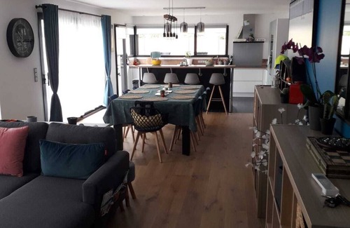 Disfruta de un día en una playa cercana, relájate en la piscina climatizada o tómate algo en el jardín de esta casa de vacaciones que, además, cuenta con un porche o patio. Para cambiar un poco, entra dentro y ponte a prueba jugando al tenis de mesa y al billar, o disfruta del wifi, de la televisión y del reproductor estéreo.