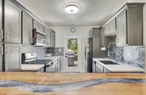 Al instalarte en este alojamiento de 4 dormitorios y 2 baños, encontrarás una sala de estar, un sofá cama, una zona para barbacoas y aire acondicionado. El cuarto de baño incluye un secador de pelo, toallas y papel higiénico. La cocina está equipada con horno, placa de cocina y frigorífico/congelador grande, además de cafetera y tetera, hervidor eléctrico y máquina de hielo. Y como podrás aprovechar la lavadora y la secadora, no te hará falta llevar mucho equipaje.