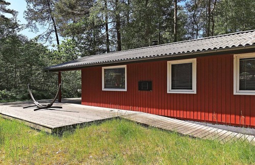 Distribución: Edificio anexo: (2x cama individual) cocina(horno, nevera con congelador ), salón-dormitorio(cama doble plegable, TV(canales de TV daneses), cromado), dormitorio(cama doble), dormitorio(cama individual), cuarto de baño(lavabo, ducha, váter), balcón o terraza, calefacción(radiador(es) eléctrico(s)), terraza, muebles de jardín