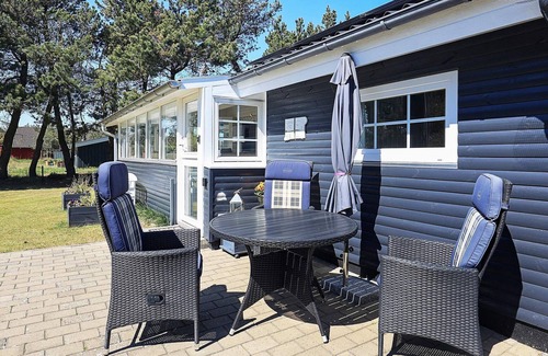 Kitchen(cooker(electric), hood, coffee machine, microwave, dishwasher, fridge(+ freezer)), Living/bed room(TV(german television channels, danish TV channels (DR1 and TV2)), radio, high chair), bedroom(double bed, children's bed), bedroom(3x bunk bed), bathroom(bathtub or shower, washbasin, toilet, washing machine), conservatory, heating(electric), terrace, BBQ, air to air heatpump