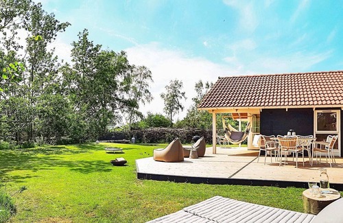 En un entorno natural tranquilo en Hummingen en Lolland se encuentra esta hermosa, bien cuidada y espaciosa cabaña de Kalmar de 2007. La casa está ubicada a 500 metros de una hermosa playa de arena para niños. Puede caminar hasta la playa a través de un camino cerrado a través de una zona verde. . La cabaña contiene una gran cocina abierta equipada con una amplia selección ordinaria de utensilios de cocina para cocinar y hornear. Un gran living y comedor con buena estufa de leña. En la sala de estar hay un televisor inteligente con airplay, que está conectado al Chromecast con la opción de transmitir TV, películas o música. Hay canales aéreos daneses y alemanes. La música se puede reproducir en un altavoz bluetooth portátil. El baño tiene calefacción por suelo radiante y hay acceso a una bañera de hidromasaje y una sauna. 2 habitaciones idénticamente amuebladas con amplias camas dobles y armario. Una habitación con litera y posibilidad de espacio de trabajo a domicilio, donde se puede utilizar una mesa abatible y una silla de conferencias ajustable. Hay una selección de diferentes juegos, que incluyen tablero y rompecabezas para adultos y niños. El interior de la casa es moderno. Desde el salón se accede a una gran terraza de madera de nueva construcción, que está parcialmente cubierta. En la terraza hay muebles de jardín nuevos y modernos. El jardín y la terraza están orientados al sur y están aislados (privados). Es posible disfrutar del sol todo el día o relajarse a la sombra. En el lado izquierdo de la casa hay un rincón acogedor, con una mesa y un banco, desde el que se accede a la barbacoa, brasero y parrilla. En el lado derecho de la casa hay una tumbona para 2 personas. En la parte trasera del jardín también hay una fogata con un banco grande y ancho y asientos individuales. Hay un pozo de fuego, una rejilla de fuego y una selección de herramientas y otros accesorios para la chimenea. La parte trasera del jardín se conserva en parte como una parcela natural, lo que ofrece buenas oportunidades de uso para relajarse o jugar. Hay hamacas, columpio sensorial y un arenero. Hay varios juegos para uso y juego al aire libre. Es un área escénica con varios animales diferentes, por ejemplo en el jardín hay algunos animales pequeños, entre otros. pájaros y ardillas y afuera del jardín hay