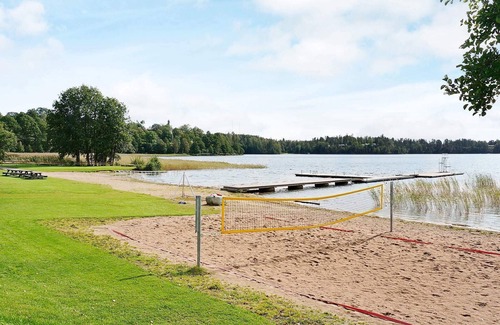 Distribución: cocina(horno de leña, fogón(eléctrico), campana extractora, cafetera, microondas, lavavajillas, nevera con congelador , trona, agua de pozo ), salón-dormitorio(TV(canales de TV suecos), radio), dormitorio(cama doble), dormitorio(cama doble plegable), dormitorio(cama doble plegable), cuarto de baño(calefacción de suelo)(lavabo, ducha, váter, lavadora), calefacción(radiador(es) eléctrico(s)), terraza, muebles de jardín, barbacoa, aparcamiento, bomba de calor aire-aire