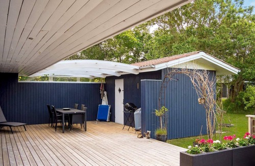 Layout: cocina abierta(fogón(eléctrico), cafetera, lavavajillas, nevera, congelador(60-99L)), salón-dormitorio(TV(canales de televisión alemanes, canales de TV daneses), reproductor de DVD, Reproductor Blu-ray, reproductor de CD, instalación estéreo), dormitorio(cama doble), dormitorio(cama doble), dormitorio(cama doble), cuarto de baño(calefacción de suelo)(secadora, bañera o ducha, lavabo, váter, lavadora), aparcamiento cubierto , terraza, terraza(cubierta)