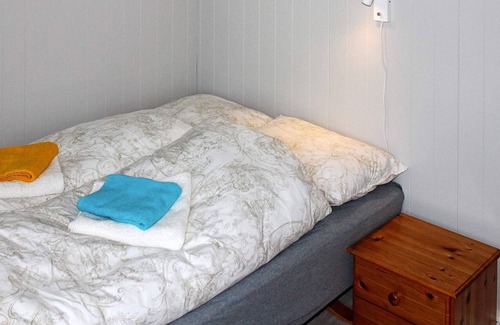 Distribución: cocina abierta(14 m2)(fogón(eléctrico), campana extractora, cafetera, microondas, lavavajillas, nevera, congelador(60-99L), lavadora), salón-dormitorio(25 m2)(TV(satélite, canales de TV noruegos ), radio), dormitorio(12 m2)(cama individual), dormitorio(16 m2)(cama doble), dormitorio(16 m2)(2x cama individual), dormitorio(6 m2)(cama individual), cuarto de baño(lavabo, ducha, váter), terraza(20 m2), muebles de jardín, barbacoa
