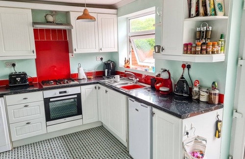 Esta cabaña está situada en el pueblo de Pembrey, cerca de Kidwelly, y puede alojar a cinco personas en dos habitaciones.