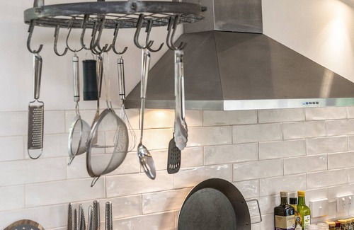 Si eres un entusiasta le inspirarán. banco de la isla madera reciclada industrial, enormes cantidades de preparación de alimentos y espacio de almacenamiento. Lista de comprobación de Jamie Oliver de aparatos y utensilios. Una nevera lo suficientemente grande como para entrar en si se pone demasiado caliente (no se recomienda), una cocina italiana o barbacoa en la terraza, si lo prefiere. La mesa de comedor de madera reciclada con capacidad para 10, por suerte también hay un lavavajillas.