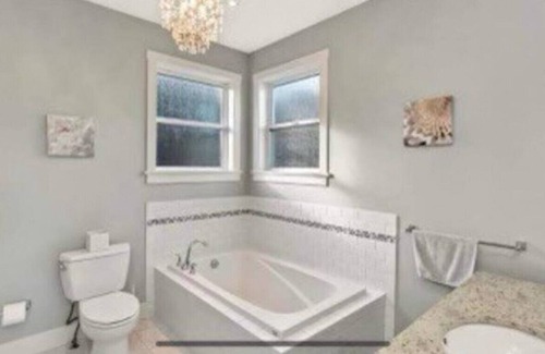 Este alojamiento de 4 dormitorios y 3 baños cuenta con una sala de estar, un comedor, una zona para barbacoas y chimenea. El cuarto de baño incluye un secador de pelo y toallas. La cocina está equipada con horno, placa de cocina y frigorífico, además de cafetera y tetera, máquina de hielo y microondas. Y como podrás aprovechar la lavadora y la secadora, no te hará falta llevar mucho equipaje.
