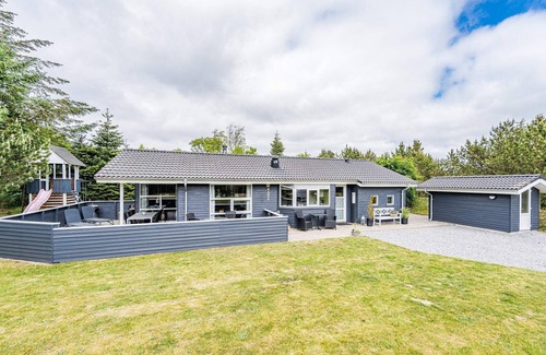 Cerca de Blåbjerg Plantage se encuentra esta acogedora casa de campo en Henne Strand. Con sus 116 m2, la casa de vacaciones es una casa de campo muy espaciosa, donde hay mucho espacio en las 3 habitaciones, así como en el resto de la casa. Uno de los 2 baños está equipado con spa y sauna. Desde la sala familiar se accede a una terraza muy grande, que está parcialmente cubierta. En todas partes de la cabaña hay suelos de baldosas o de madera. En el salón, cocina, pasillo y baños hay calefacción por suelo radiante. Todos los techos van a pendientes, lo que ayuda a enfatizar la amplitud de la cabaña. Una casa de campo realmente buena para aquellos que quieran darse un capricho. Hermosas casas de vacaciones en Henne Strand en la costa oeste. Limpieza final gratuita!