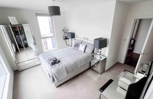 Welcome to our stunning 3-bedroom flat on the 8th floor of a brand new built in the vibrant neighborhood of South Acton, London. This exceptional property offers a truly luxurious and stylish retreat for your stay in the city with panoramic skyline City views, an amble balcony, wonderful private residential courtyard gardens.