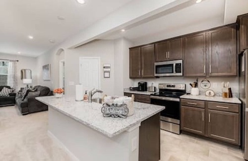 La cocina está equipada con horno, placa de cocina y frigorífico, además de cafetera y tetera, máquina de hielo y microondas. Pon a prueba tus habilidades jugando al billar, o disfruta del wifi y de la televisión. Y no tendrás que llevarte ropa de más, porque podrás aprovechar la lavadora y la secadora. Otras comodidades de este alojamiento de 4 dormitorios y 2.5 baños incluyen ropa de cama, una tabla de planchar, aire acondicionado y calefacción.