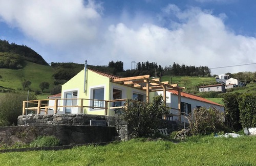 A casa do vale - Cozy vacation home in the hills above Horta. Se encuentra en Flamengos. A casa do vale - Cozy vacation home in the hills above Horta. ofrece alojamiento, con Estacionamiento, Vista, Vista al océano, Entre otras comodidades. Estas características Casa Estacionamiento, Vista, Vista al océano, Para que su estadía sea cómoda.