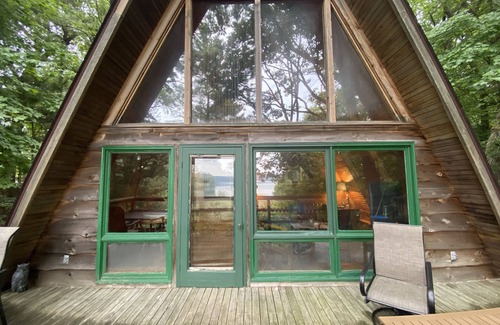 A-frame cabin nestled in forest, stunning lake view, perfect serenity. | Casa en Allegan