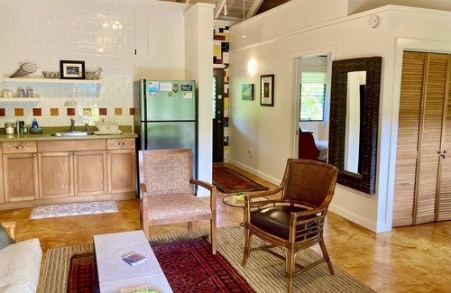 Los porches cubiertos ofrecen áreas de descanso desde donde puede disfrutar de la refrescante brisa tropical y las exuberantes vistas a las montañas. En el interior, disfrutará del espacio cómodo y aireado resaltado por una cocina moderna totalmente equipada, baño completo, dormitorio con cama doble y cuatro almohadas, sala de estar con futón de tamaño completo y un comedor separado.