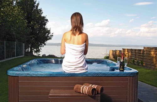 Ubicación: en la orilla sur del lago Balaton, en Balatonszárszó, justo en el agua, con su propio muelle y piscina con jacuzzi.