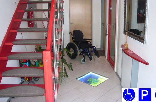 Podemos acomodar a nuestros huéspedes en sillas de ruedas en apartamentos sin barreras (apartamento para discapacitados) sin obstáculos. ¡Los visitantes con restricciones de movilidad y pensionistas son bienvenidos! Tenemos una variedad de opciones para satisfacer sus necesidades individuales. ¡Con nosotros puede tener unas vacaciones sin barreras! Nos complace ofrecer transporte para nuestros huéspedes, incluidos aquellos con discapacidades, desde el aeropuerto o estación de tren.