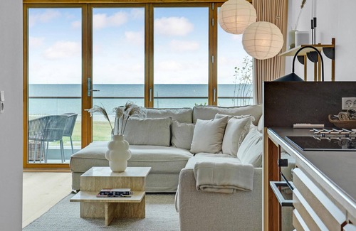 Prepárese para pasar unos días fantásticos en Funen, donde podrá disfrutar de una ubicación realmente maravillosa en la bahía de Kerteminde. Aquí tiene este hermoso piso, amueblado con soluciones de buena calidad en todas partes. Materiales naturales, una agradable combinación de colores y mucha luz a través de las ventanas proporcionan un entorno tranquilo y armonioso para su estancia. Lo mejor de todo es la impresionante vista de las aguas azules de la bahía, el puente Storebælt y el bullicio en el agua, que podrá disfrutar mientras cocina, se relaja en el salón o toma una taza de café en el amplio balcón por la mañana.