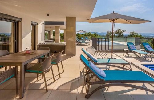 Bienvenido al confortable apartamento cerca de la playa, que acoge a sus huéspedes en una ubicación panorámica muy atractiva, justo el lugar adecuado para un agradable descanso. Las luminosas habitaciones y el moderno mobiliario hacen que su estancia aquí sea una experiencia satisfactoria, pero lo más destacado son las vistas de las que podrá disfrutar aquí mientras cocina, come y se relaja con los suyos. Disfrutad juntos de acogedoras veladas en el sofá después de vuestras aventuras. Disfrute de maravillosas horas al aire libre, mientras toma el sol en la terraza todos los pensamientos de la vida cotidiana se olvidan rápidamente mientras deja vagar su mirada por el paisaje. Refrésquese en una de las dos piscinas compartidas o termine el día con un relajante baño en el jacuzzi privado a cielo abierto.