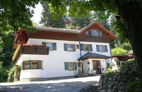 Nuestro "Murmelbau" es un acogedor apartamento para 2 personas con piso de madera, sala de estar / comedor y un dormitorio, además de un bonito baño. También hay un pequeño balcón. Ubicación muy idílica en una colina, pero muy cerca del pueblo. Punto de partida óptimo para excursiones y excursiones. No está lejos del lago Forggensee y se puede llegar a la pista de esquí de fondo en 5 minutos.