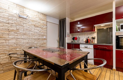 Está equipado con todo el equipamiento necesario para la cocina (olla a presión, horno grande, microondas, hervidor de agua, máquina raclette, prensa de cítricos, cafetera tipo nespresso) nevera con congelador, lavavajillas y lavadora. También tienes una plancha y tabla de planchar. Un altavoz Bluetooth también mejorará tu noche, me aseguré de que tengas los mismos beneficios que en casa ... Una vez que el automóvil esté estacionado en su estacionamiento cubierto y seguro, estará cerca de los baños termales o del remonte.