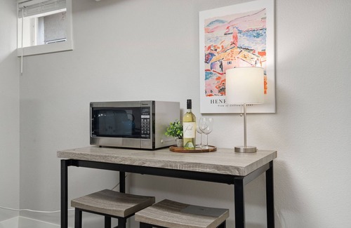 La sala de estar desemboca en la espaciosa cocina remodelada y el área de comedor (con capacidad para 6+) donde puede disfrutar de una cena tranquila cocinada en casa o una maravillosa comida entregada en uno de los muchos restaurantes del casco antiguo.