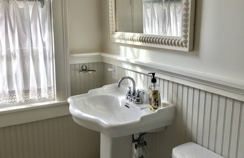 "Anna salvó el día en que mi teléfono y mi computadora fallaron, lo que me hizo perder toda la información de AirB & B, excepto su número de teléfono". Llegamos tarde en la noche, y ella rápidamente devolvió nuestro texto con el código de entrada ~ ¡¡¡¡¡¡¡¡¡¡¡¡¡¡¡¡¡¡¡¡¡¡¡¡¡¡¡¡¡¡¡¡¡¡¡¡¡¡¡¡¡¡¡¡¡¡¡¡¡¡¡¡¡¡¡¡¡¡¡¡¡ La casa es fascinante, ya que Anna es una artista extremadamente talentosa, con un ojo único para la colocación de su trabajo. Tomaría otra semana comenzar a absorber la obra de arte solo. Nos encantó la combinación ecléctica de antigüedades y modernas. La casa está impecablemente limpia. Absolutamente todo lo que uno podría necesitar se proporcionó de manera lógica, por lo tanto, fácil de encontrar. Regresamos a Franklin para esparcir las cenizas de nuestra madre. La belleza, la paz y la tranquilidad se sumaron a la nostalgia de nuestra visita. ¡El hecho de que la ventana de la habitación daba a nuestra casa de la infancia fue una ventaja que probablemente solo era relevante para mí! Si está buscando una experiencia "desconectada", esto es perfecto, no hay televisión. La tienda de segunda mano, a cuatro minutos a pie, fue un hallazgo increíble, al igual que el Museo del Ferrocarril. Desafortunadamente, el único restaurante de la ciudad estaba cerrado durante la semana. Oneonta está a solo 11 millas de distancia. ¡Encontramos Sloans, Jay's Place, Your Father's Place y, por supuesto, volvimos, dos veces, a Brook's Chicken BBQ! "