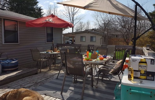 La cabaña es muy cómoda y cálida. Tiene capacidad para 6 personas cómodamente con 2 dormitorios, uno con una cama doble en una habitación y una cama litera con una tapa doble inferior y una individual en la otra y también sofás plegables en la sala de estar. Cocina totalmente equipada. Cottage tiene gran presión de agua con un baño. La cubierta tiene dos mesas / sillas al aire libre con dos sombrillas. Gran patio privado con mucho espacio para que jueguen los niños, también tiene un pozo de fuego ideal para sentarse y asar malvaviscos. Bunkie al aire libre es bastante espacioso y cómodo para dormir si los huéspedes adicionales desean quedarse por encima del máximo de 6. Neighborhood Beach es un pequeño paseo (unos 3 minutos). Bayfield está a unos 10 minutos. Tienda de comestibles y licores y muchos mercados de agricultores alrededor. Grand Bend (10-15 minutos en coche).