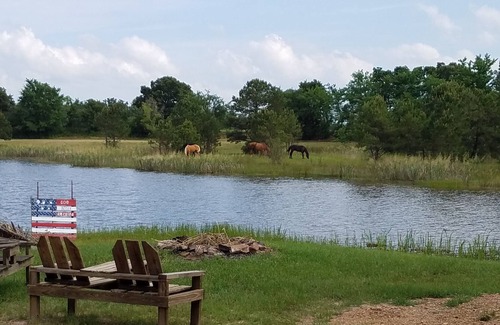 El rancho es perfecto para relajarse, y hay una combinación de camino y sendero que rodea el lago, el estanque y la propiedad que es adecuada para practicar senderismo, montaña o bicicleta de playa. Es muy tranquilo y privado. Genial para ver pájaros, patos y gansos. Damos la bienvenida a sus mascotas bien educadas y controlables. Somos amantes de los animales: tenemos 6 caballos, 3 perros, 2 gatos y 2 gallinas en el rancho.