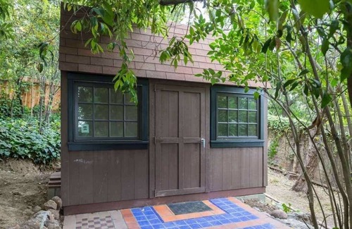 Nuestra pequeña cabaña recientemente remodelada se encuentra en el patio trasero de nuestra casa de Oakland Hills. La cabaña es pequeña pero ofrece la mayoría de los elementos esenciales para vivir. Cocina americana con microondas. Un baño recién remodelado. Una cómoda cama doble, un escritorio y un pequeño comedor. Disfrutará de la cabaña totalmente privada y tranquila para usted solo. Es adecuado solo para un invitado NO FUMADOR. Si no te gustan los árboles, los perros, los animales salvajes y la naturaleza, entonces este no es el lugar para ti. Disfrutamos de alojar huéspedes responsables y respetuosos de todo el mundo.